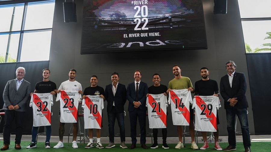 En la presentaci贸n de los refuerzos con que contar谩 River en 2022 el volante comolombiano acapar贸 la mayor atenci贸n, rodeado por Mammana, Gonzalez P铆rez, Barco, G贸mez y Pochettino.