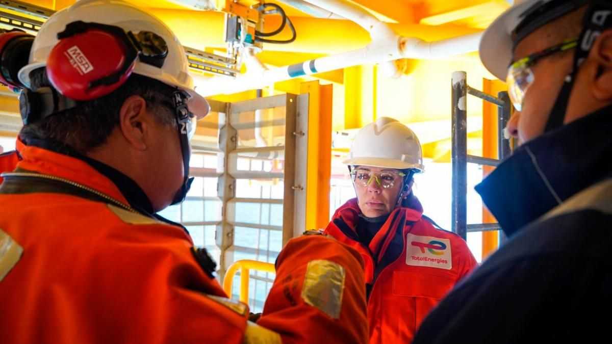 La funcionaria estuvo acompañada por Javier Rielo (director general de Total Energies), Manfred Boeckmann (director general de Wintershall DEA) y Marcos Bulgheroni (CEO de PAE) y el secretario de Hidrocarburos de Tierra del Fuego, Alejandro Aguirre.