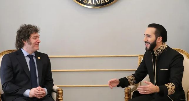 A principios de mes, el 1° de junio, el fundador de La Libertad Avanza dio el presente en el acto de reafirmaci贸n de mando de Bukele, quien fue reelecto con el 85% de los votos.